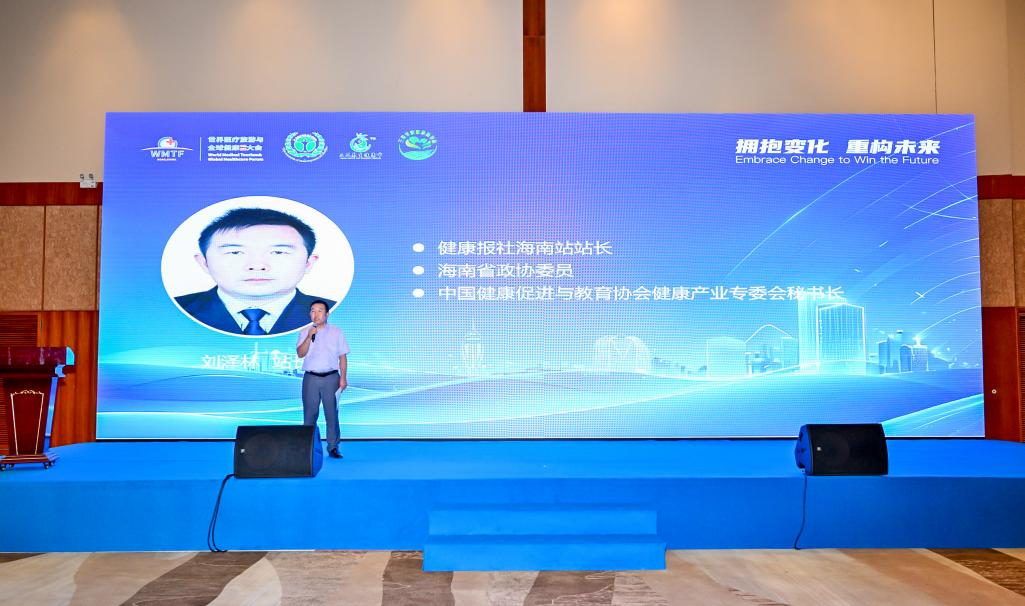 (图3-4 健康报社海南站站长刘泽林、WMTF-世界医疗旅游与全球健康(博鳌)大会主席曾松致辞)