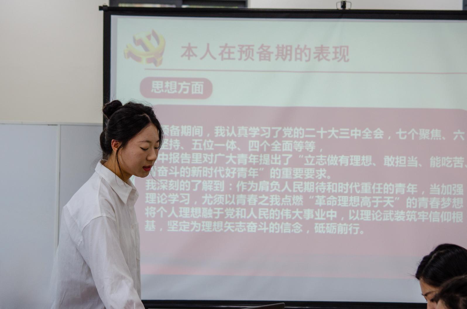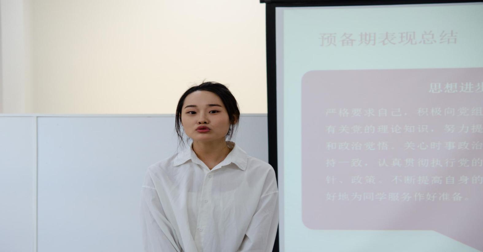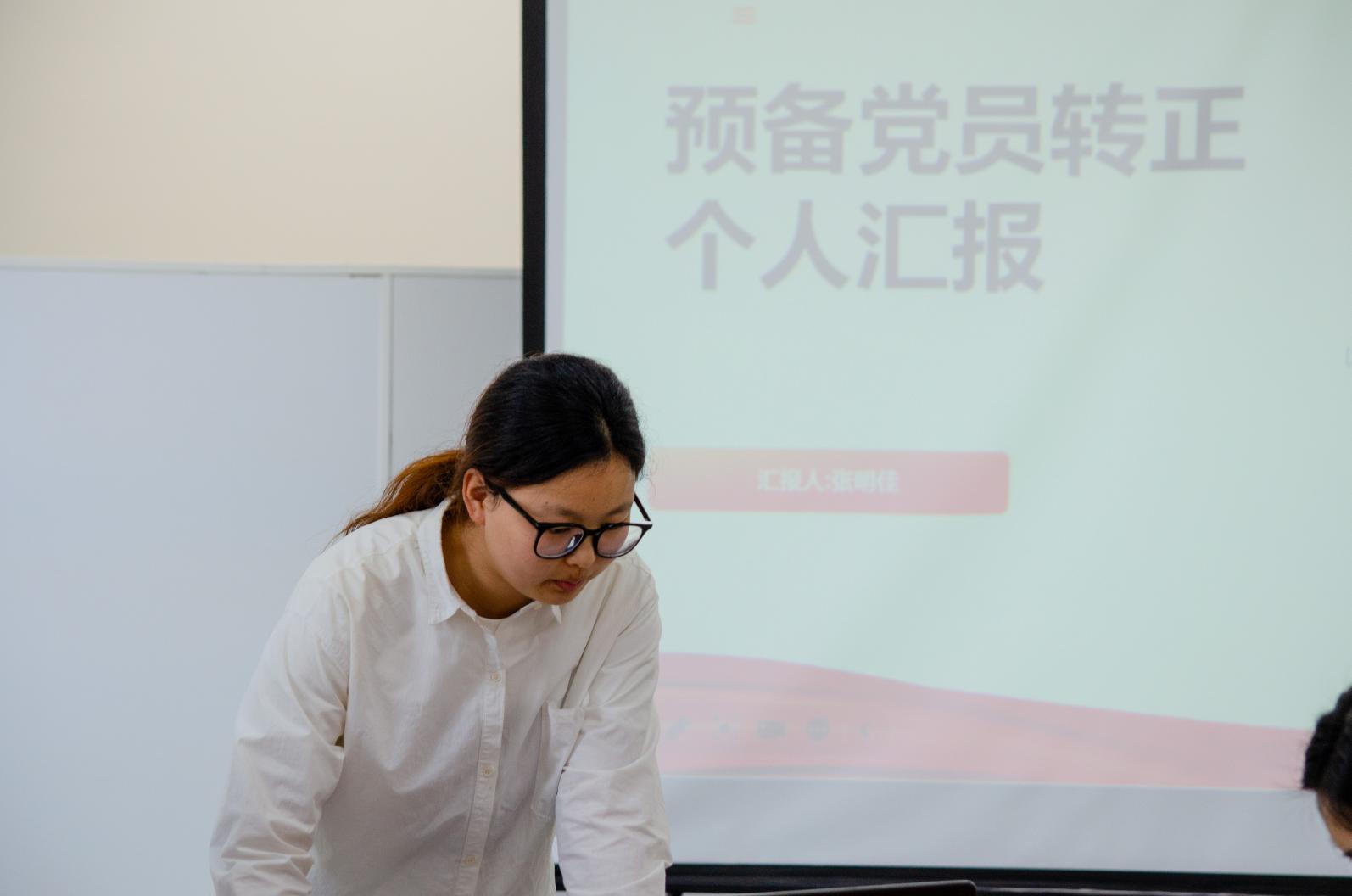 王珂阳、兰飞、王佳琦、郑美琪、张明佳5名同志进行了思想汇报,展示了自己在预备期间的成绩。