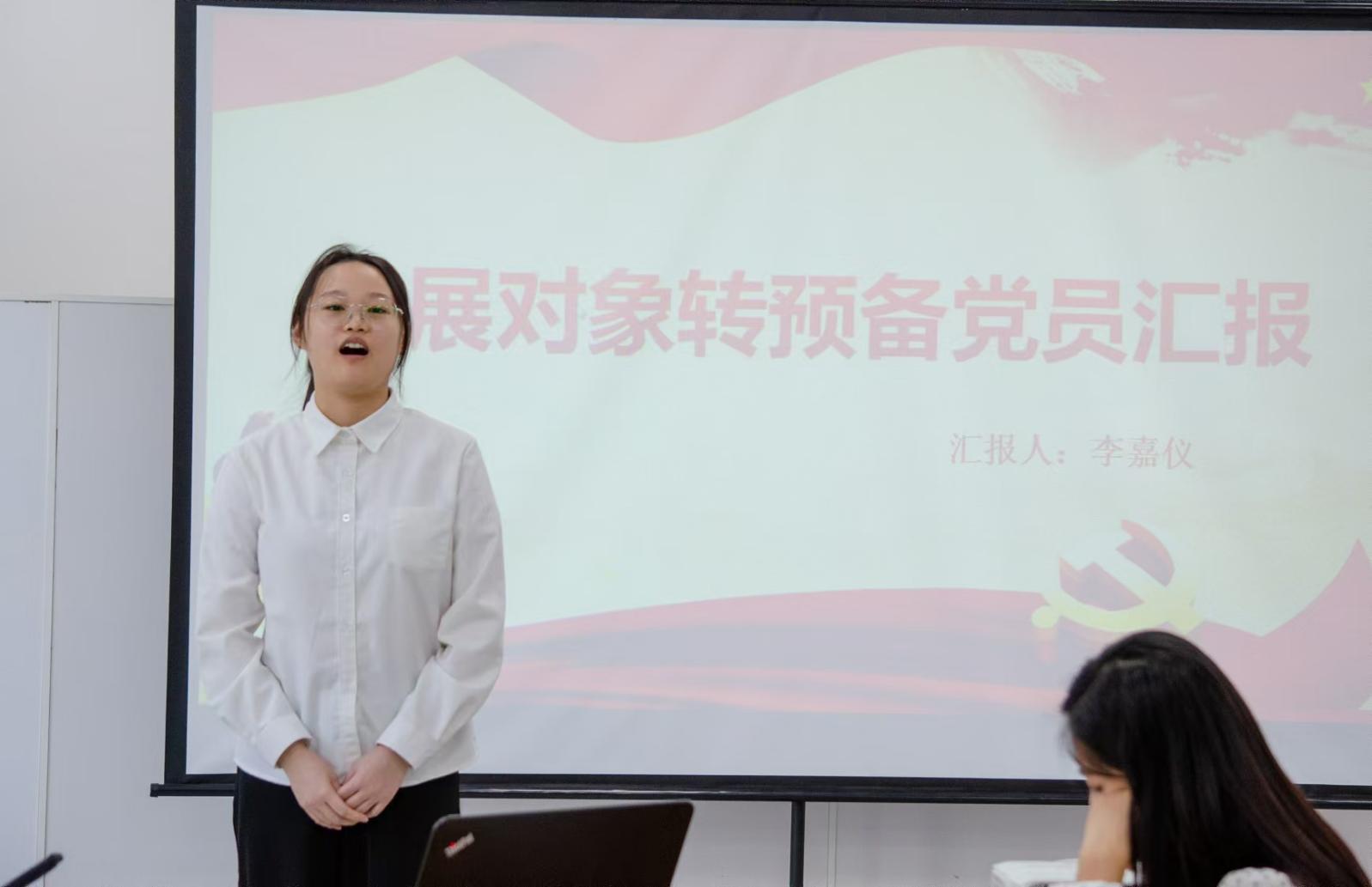 请发展对象李嘉仪、吴秋桦、韦兰兰、林晨怡、张梦燃、柏思思、孙雅星、李杭骏、吕富、梁喻10名同志汇报预备期间的思想、工作情况。