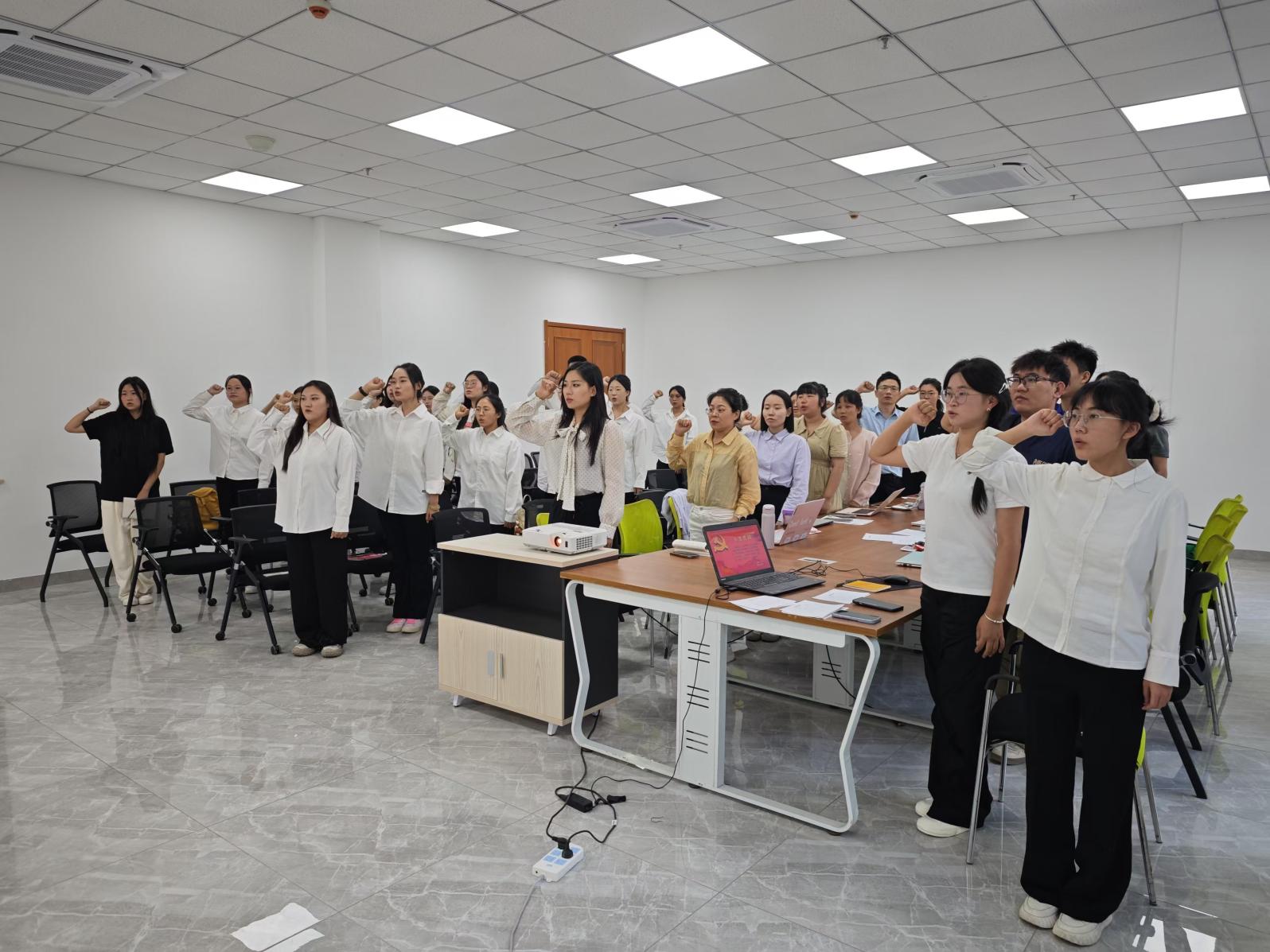 李静茹书记表示,大家很多同学是大四的员工,你们可能在校的时间越来越少。希望同学们珍惜好你们从这个实习班结束之后回校的一段儿时间,积极参加公司安排的各项工作,把自己成为预备党员之后的这个模范带头作用充分的发挥出来。我希望大家从成为中共预备党员的这一天开始,不忘自己的入党初心,牢记自己肩上的使命,真正的把自己当做一名党员来看待,在任何事情上都发挥自己的先锋模范带头作用。把学习生活还有工作都协调好,真正的让同学们看到大家是作为党员的一个身份,看到大家的积极性。