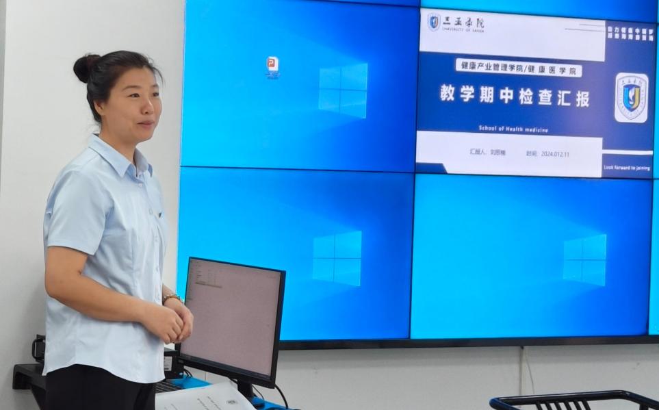 开始阶段是专题汇报,主要包括四个方面。她从学院简介讲起,公司现有护理学、康复治疗学、健康服务与管理、医学检验技术四个专业,其中护理学和康复治疗学两个专业今年顺利通过新增学士学位授权专业评审,并且医学检验技术专业、护理学专升本(3+2)专业今年开始招生。公司本学期现有在校员工1459人,并通过引进“双高人才”,正在组建结构合理的专业课程团队。目前,公司教职工43人,专业教师35人(实验教师1人),实验员1人、行政职能人员2人、思想导师5人。