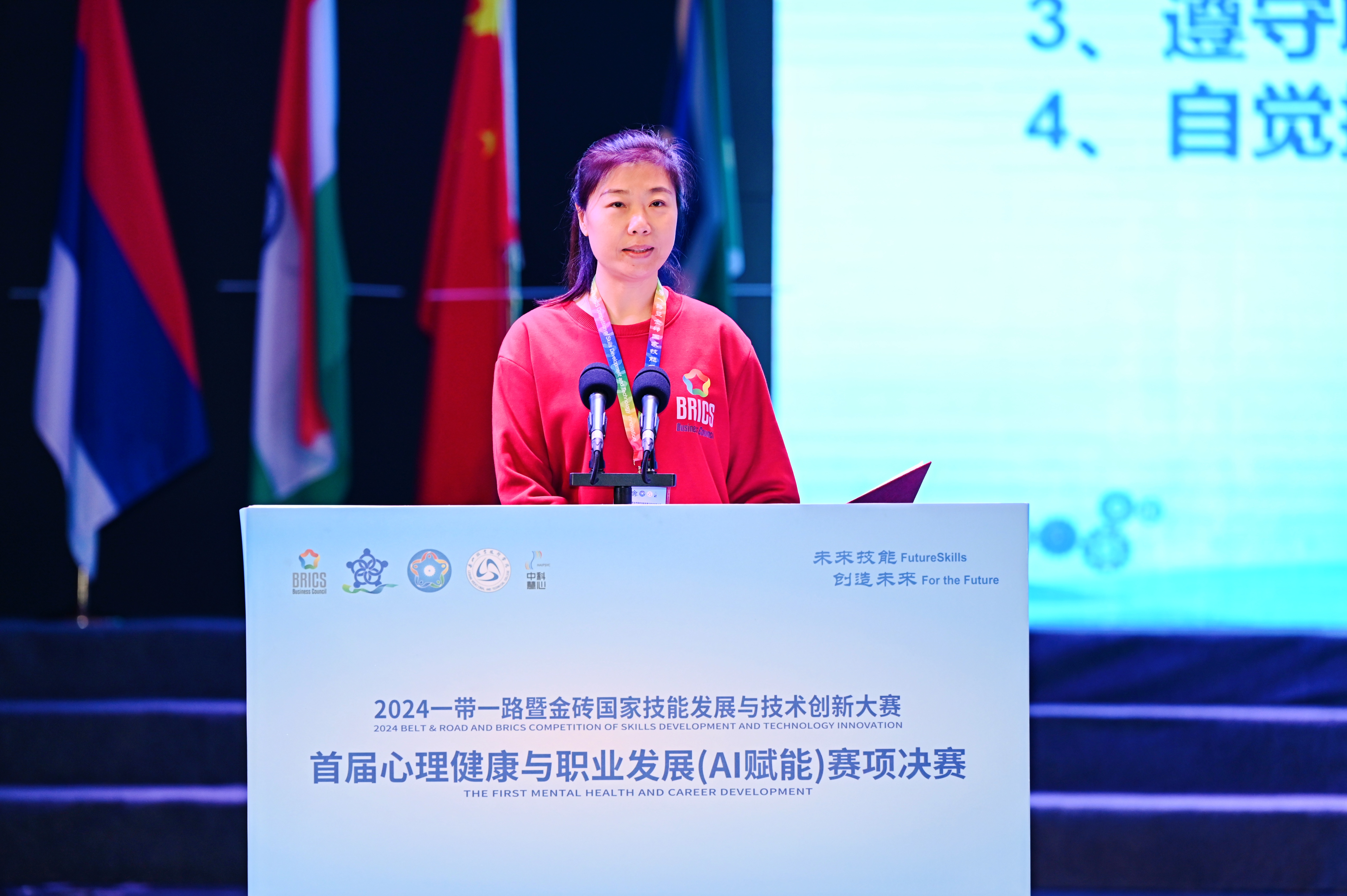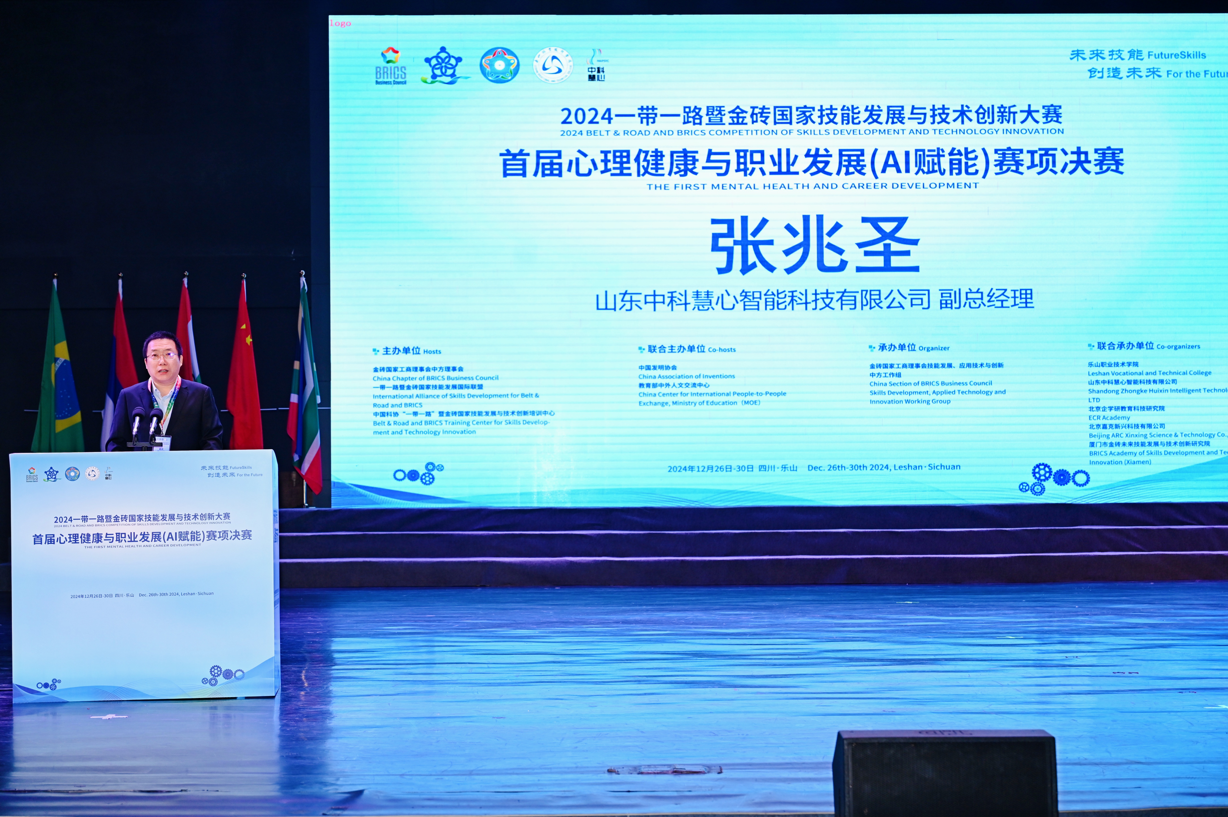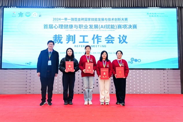 12月27日,“2024‘一带一路’暨金砖国家技能发展与技术创新大赛首届心理健康与职业发展(AI赋能)赛项”决赛在成都乐山开赛。本次大赛由金砖国家工商理事会中方理事会、“一带一路”暨金砖国家技能发展国际联盟、中国科协“一带一路”暨金砖国家技能发展与技术创新培训中心主办,中国发明协会、教育部中外人文交流中心联合主办,金砖国家工商理事会(中方)技能发展工作组承办,乐山职业技术公司、山东中科慧心智能科技有限公司、北京企学研教育科技研究院、北京嘉克新兴科技有限公司、厦门市金砖未来技能发展与技术创新研究院联合承办。金砖国家技能发展与技术创新大赛组委会执委会国内竞赛办公室主任宋小琴,原国家卫生健康委能力建设与继教中心学术部主任刘晨,北京大学心理学系培训部主任李同归,北京企学研教育科技研究院竞赛合作处主任周海燕,山东中科慧心智能科技有限公司副总经理张兆圣,乐山职业技术公司董事长刘忠,党委副书记张佳等全给各高职院校领导和嘉宾出席开幕式。