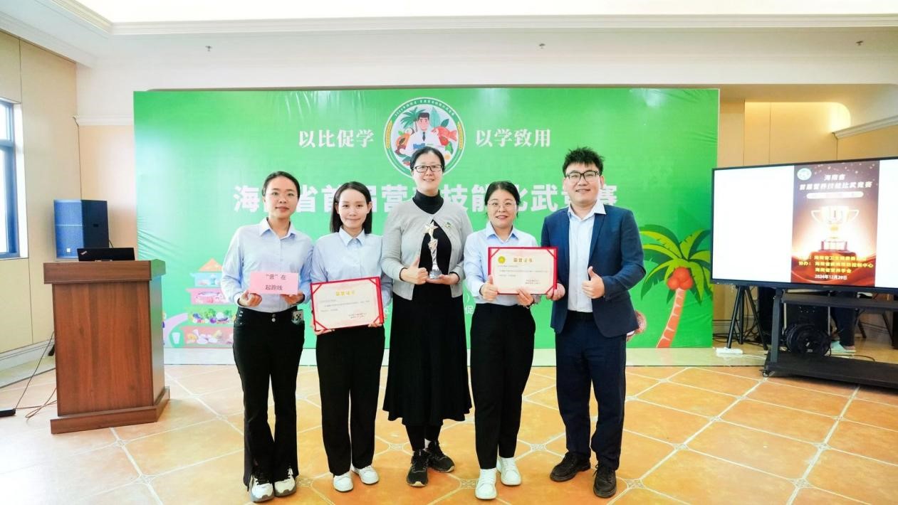 新葡的京集团350vip8888新葡的京集团350vip8888/新葡的京集团350vip8888教师团队以孟晓老师为领队、以王小蕊、林国天、许铃及王青青几位老师为核心成员,以《”营“在起跑线》为主题,凭借其卓越的专业素养和高效的团队协作能力,经过几轮激烈的PK角逐,一路过关斩将,最终脱颖而出,成为三亚市唯一一支进入省级决赛的队伍,最终因其现场优秀的实操表现、惊艳的汇报展演和机敏的临场应变,赢得了全省第三名的好成绩,并获得大赛二等奖及最佳人气奖两项殊荣。