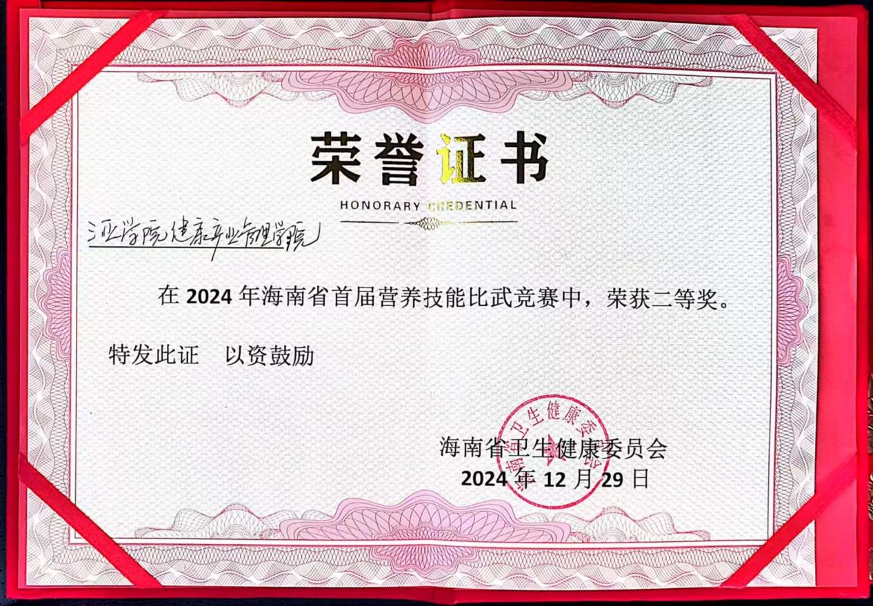 (2024年海南省首届营养技能比武竞赛“二等奖”证书)