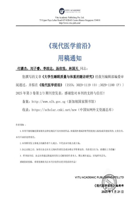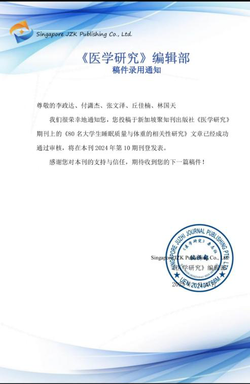 这两篇论文的成功发表,绝非偶然,而是大创项目精心培育的硕果之一。在大创项目的推动下,同学们走出理论知识的象牙塔,深入到实际的医学研究中。从项目的选题构思,到数据的收集测量,再到论文的撰写修改,每一个环节都凝聚着团队的智慧与汗水,也锻炼着同学们的科研能力、实践能力和团队协作能力。