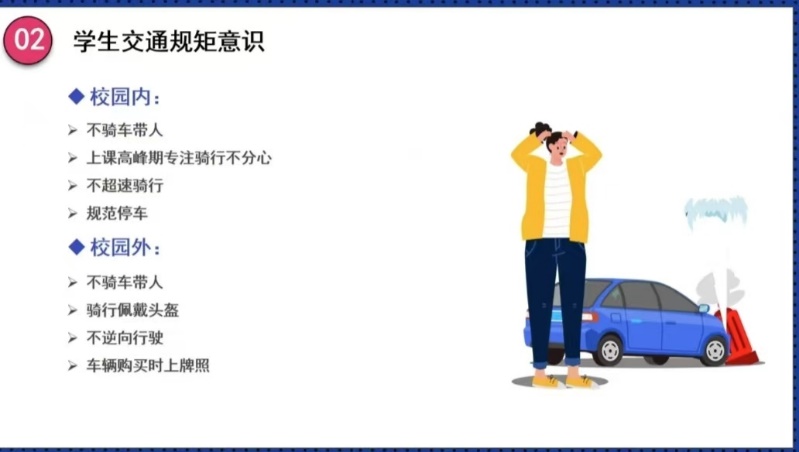 校内骑行电动车或自行车时,注意控制车速,避免逆行或抢道,严禁超载。