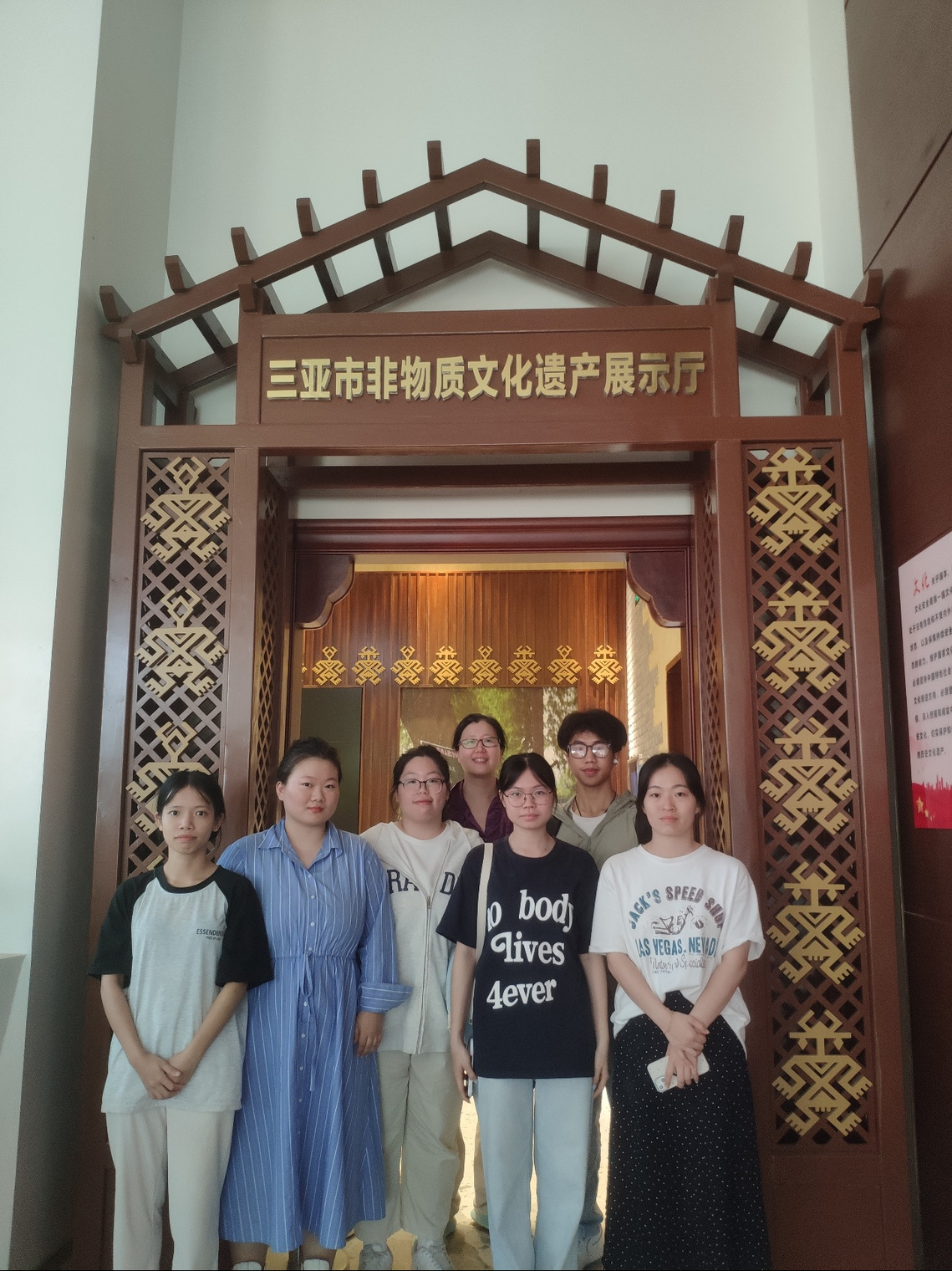 此次研学活动受到了中心领导的大力支持,特聘讲解员张老师用她清澈的嗓音,把每一个图片、展区背后的非遗故事,给大家娓娓道来。同学们参观了黎族原始制陶技艺、黎锦的制作流程、疍歌的起源和疍家生活的方式、钻木取火等展区,深入了解非遗技艺的历史渊源、制作工艺及传承现状。同学们近距离感受到非物质文化遗产的魅力,并产生了浓厚的兴趣,师生和张老师积极互动,探索传统文化与现代创业的融合可能。张老师特别耐心细致地回答了师生的提问,使大家进一步了解了中华文化和历史中的瑰宝,如何发生、发展、演变、传承,以及在新时代里,通过各界努力,融入了新的技术,开创了新的生产力,焕发勃勃生机。