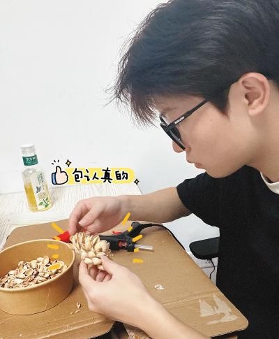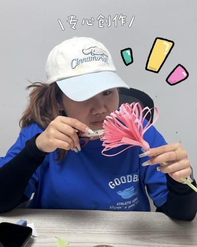 员工感言:“偶然用开心果果壳制成莲花,过程满是惊喜。看着原本要丢弃的果壳华丽变身,深感创意无限。这不仅践行环保,还为校园生活添彩,愿往后常以巧思让平凡物绽光芒,变废为美。”