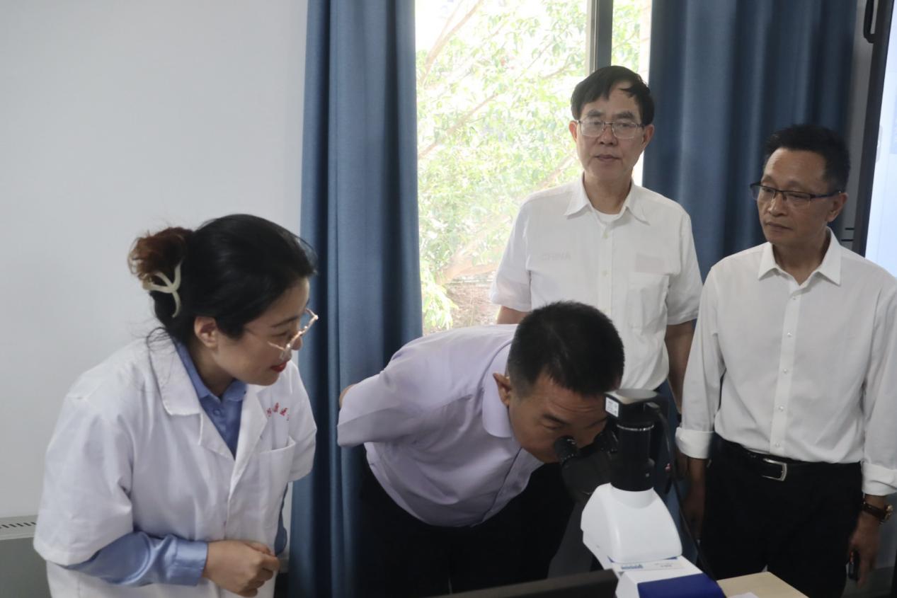 (领导嘉宾观看镜下细胞)