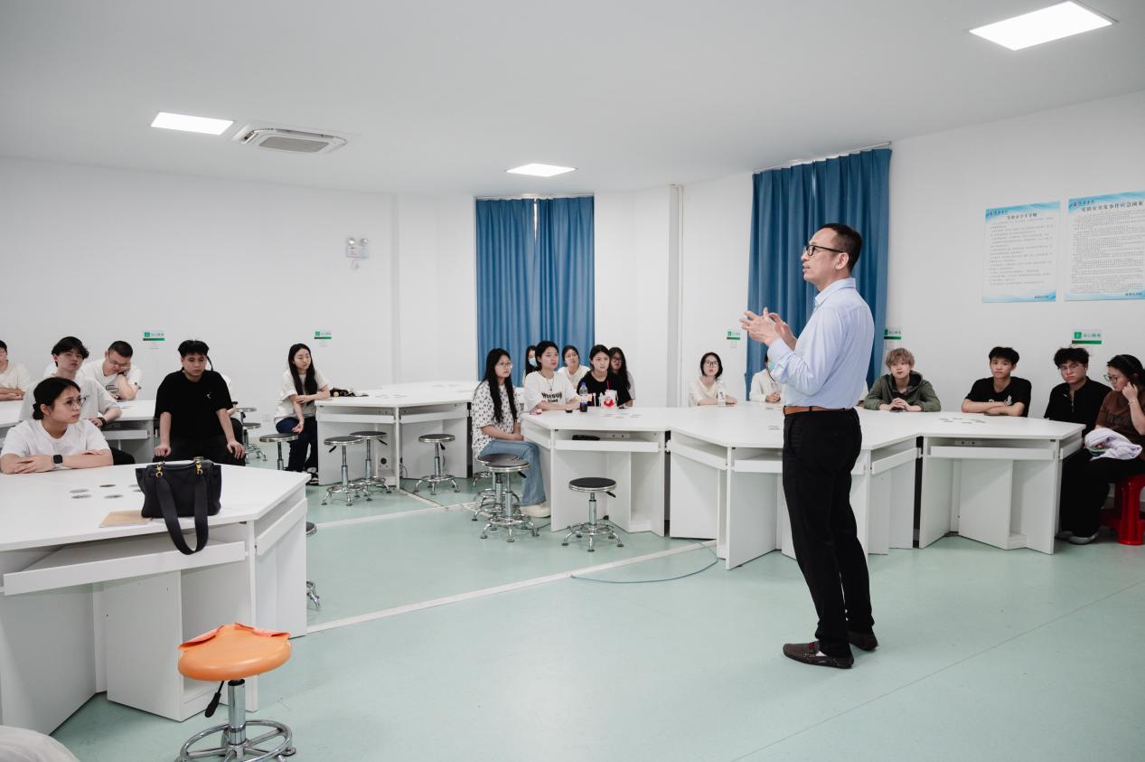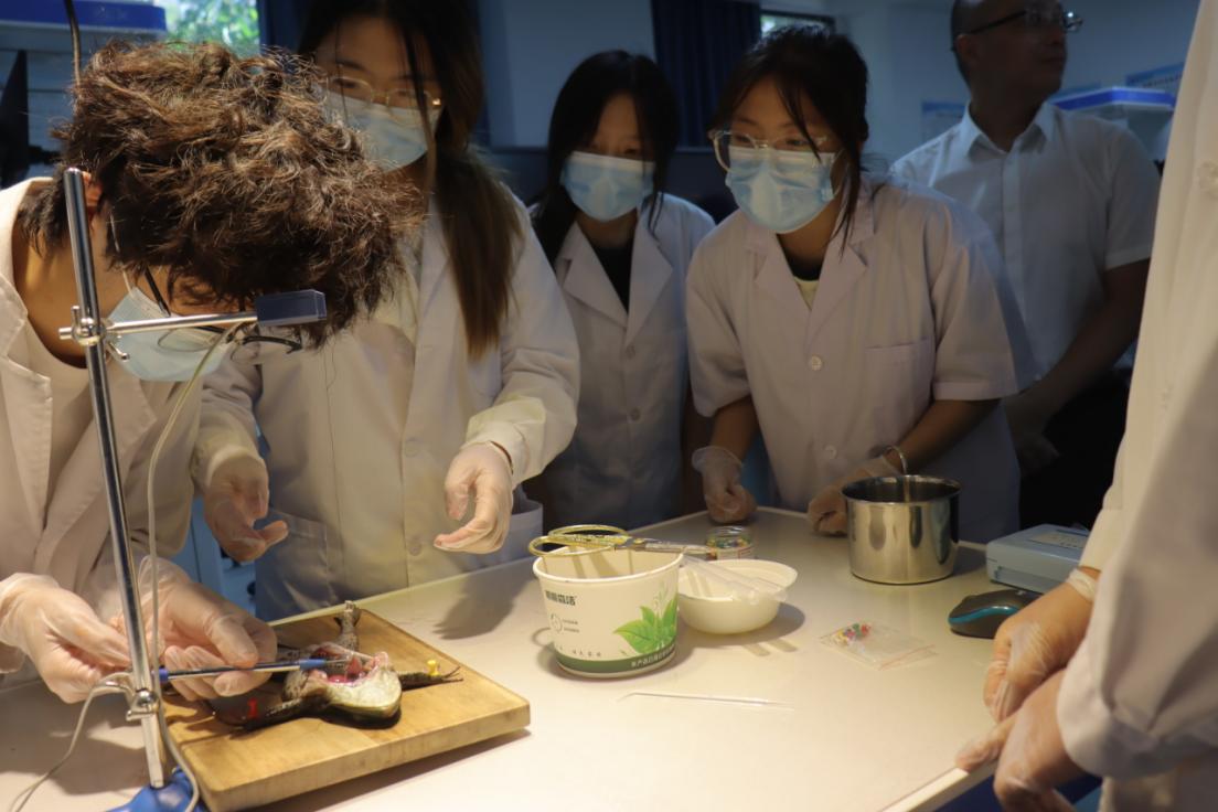 在机能学实验室,嘉宾们迎来了一场别样的视觉体验。他们聚精会神地观看在实验仪器上进行的牛蛙解剖插管实验。整个实验过程清晰流畅,展示了先进的实验技术和科学的实验方法。这一环节不仅让嘉宾们领略到跨学科实验的魅力,也了解到新葡的京集团350vip8888在多学科融合教育方面的积极探索。