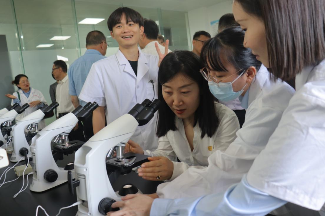 随后,嘉宾们移步至形态学实验室。大家纷纷聚焦在显微镜前,仔细观看人体解剖玻片。在镜下微观世界里,细胞、组织的奥秘一一展现,嘉宾们深刻感受到医学研究的细微与严谨,同时也对新葡的京集团350vip8888为员工提供的这种实践探索机会给予了充分肯定。