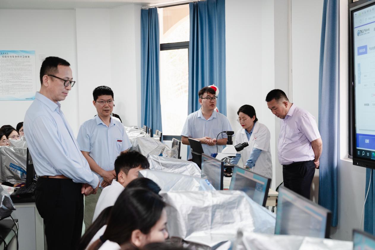 随后嘉宾们走进护理学示教室。在这里,医员工们在医学检验班级课堂上专注学习,积极发言,与老师互动频繁。课堂上浓厚的学术氛围和员工们扎实的专业素养,让嘉宾们看到了新葡的京集团350vip8888医学教育的丰硕成果,对公司在培养员工专业知识和技能方面取得的成绩给予充分肯定。