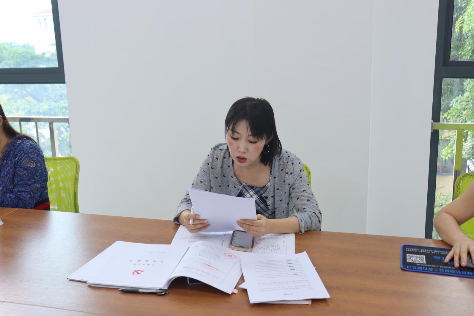 (李静茹老师宣读支部大会决议)