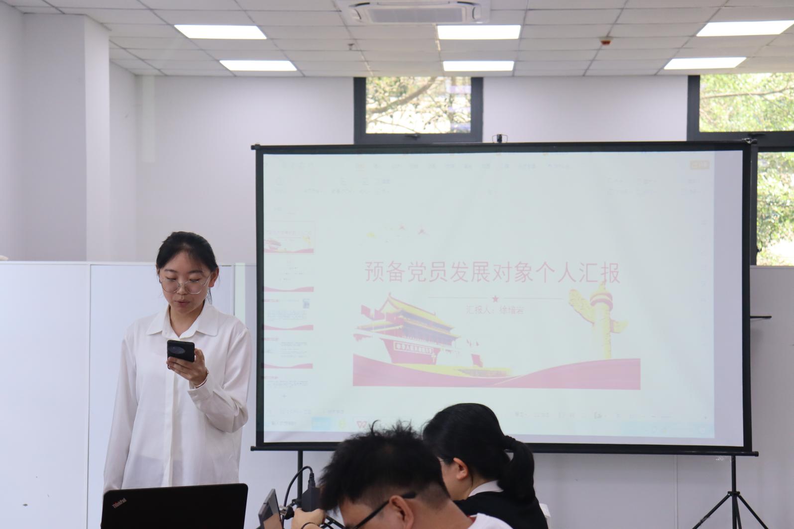 请发展对象文秀旋、赵艺程、申屠依婷、朱天志、应佳利、杨颜陌、李佳萱、赵桉晓、李颖、徐培岩、张蕊11名同志汇报预备期间的思想、工作情况。