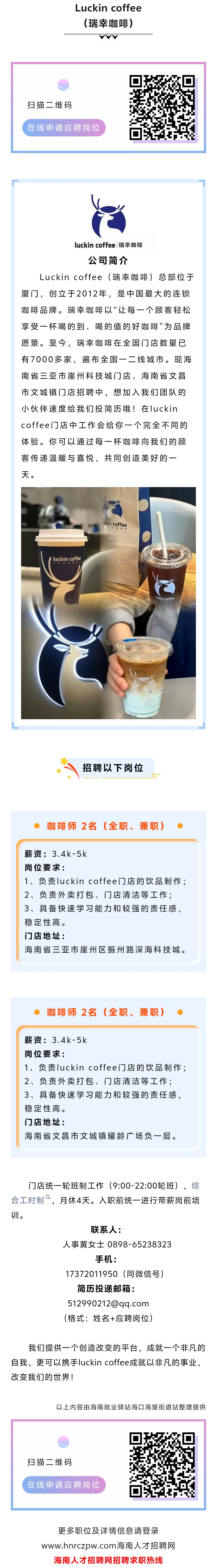 【瑞幸咖啡招聘】月薪5000,全职/兼职咖啡师