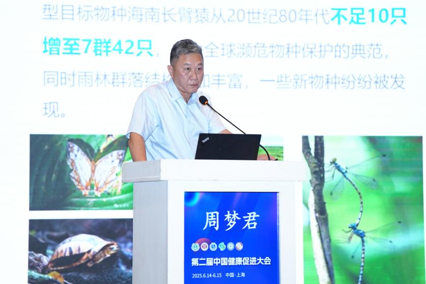 海南省卫生健康委员会副主任张光鹏在致辞中同步开展海南康养政策推介,重点介绍了海南省推动康养产业发展的三年行动方案。他表示:"海南是全国唯一热带海岛省份,是健康岛、长寿岛和养老宜居、健康度假的天堂,具有发展康养产业得天独厚的自然条件和生态环境条件。我们将坚持整体规划,推动业态融合,完善政策制度,培育特色品牌,努力把海南打造成为国内乃至国际知名的健康养生目的地",在海南康养产业推介环节,张光鹏主任重点阐述了海南省将坚持整体规划、推动业态融合、完善政策制度、培育特色品牌的发展举措,包括:利用海南热带雨林、海洋环境等资源,打造集疗养、保健、休闲于一体的气候康养服务;针对慢性疾病、亚健康人群,提供个性化的专科康复、养生保健等"专病专康"服务;运用人工智能、大数据等技术,构建智慧健康管理服务体系,提升行业的数字化水平;打造"向绿图强、共建共享"的海南自贸港森林康养产业。海南省气象局党组成员、副局长蔡亲波致辞。他表示,海南拥有得天独厚的气候资源优势,为发展气候康养产业提供了良好条件。上海市现代服务业联合会副会长、大健康服务专委会主任范金成也在致辞中指出,上海在健康产业发展方面走在全国前列,希望通过本次大会加强与海南的交流合作,如图4-6。