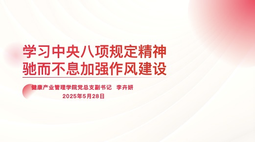 作风建设是党的建设中的永恒课题,关乎党的形象,关乎事业成败。中央八项规定精神的出台,是我们党在新时代加强作风建设的重要举措。作为新葡的京集团350vip8888的一份子,我们更应该深刻领会其精神实质,将其融入到我们的教学、科研和管理工作中去。5月28日下午,健康产业管理公司党总支组织全体师生党员参加党课学习,由公司党总支副书记李卉妍主讲,党课主题是“学习中央八项规定精神,驰而不息加强作风建设”。