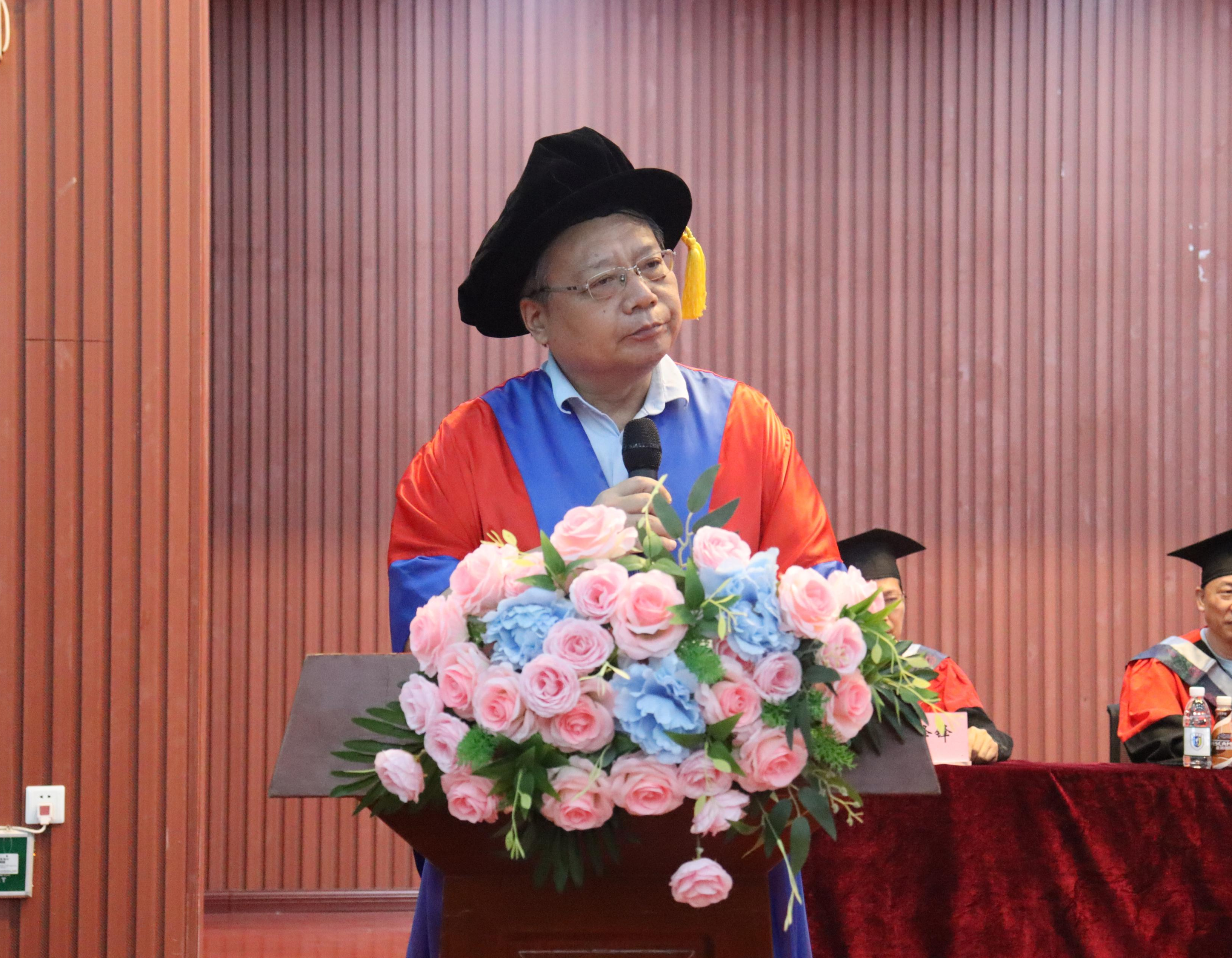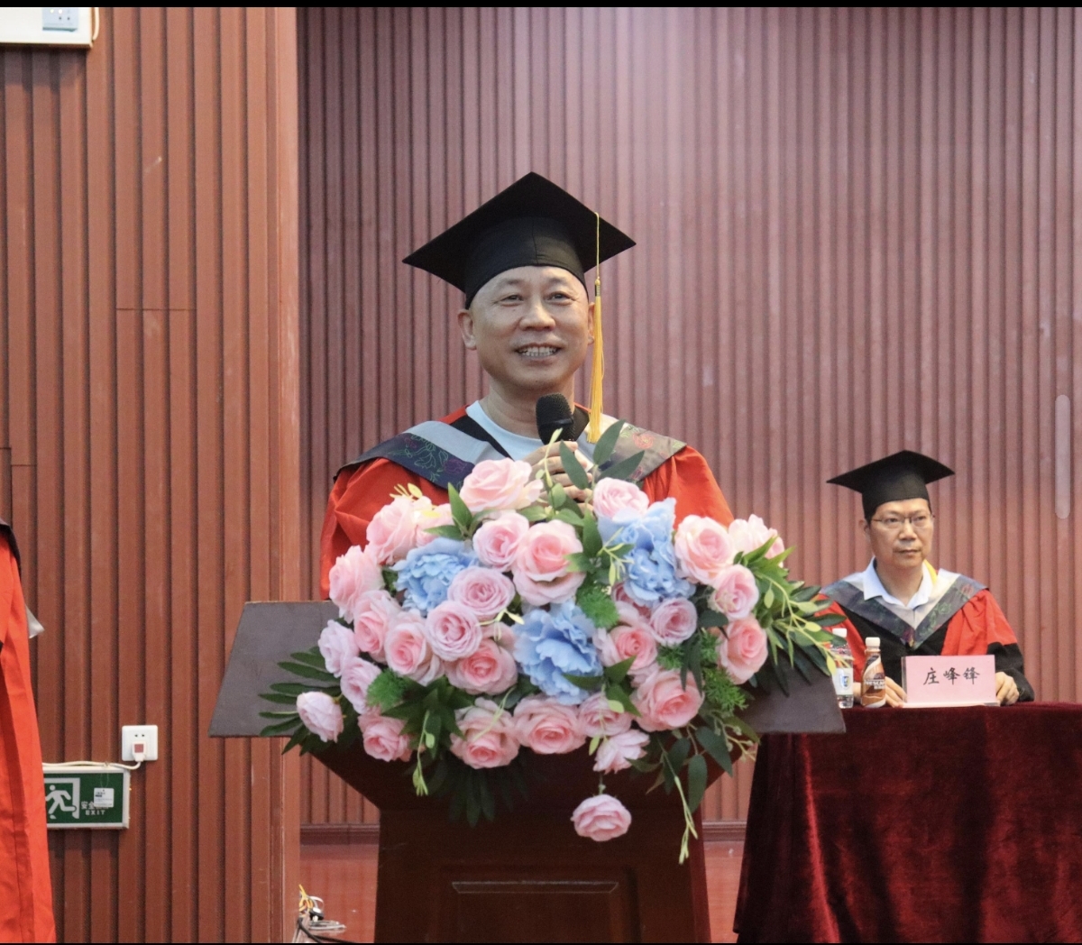 全体师生奏唱国歌后,公司经理陈小勇教授发表致辞,他回顾了2025届毕业生在校期间的成长历程,勉励大家秉持“健康守护者”的使命,在未来的人生道路上勇攀高峰,为社会贡献力量。