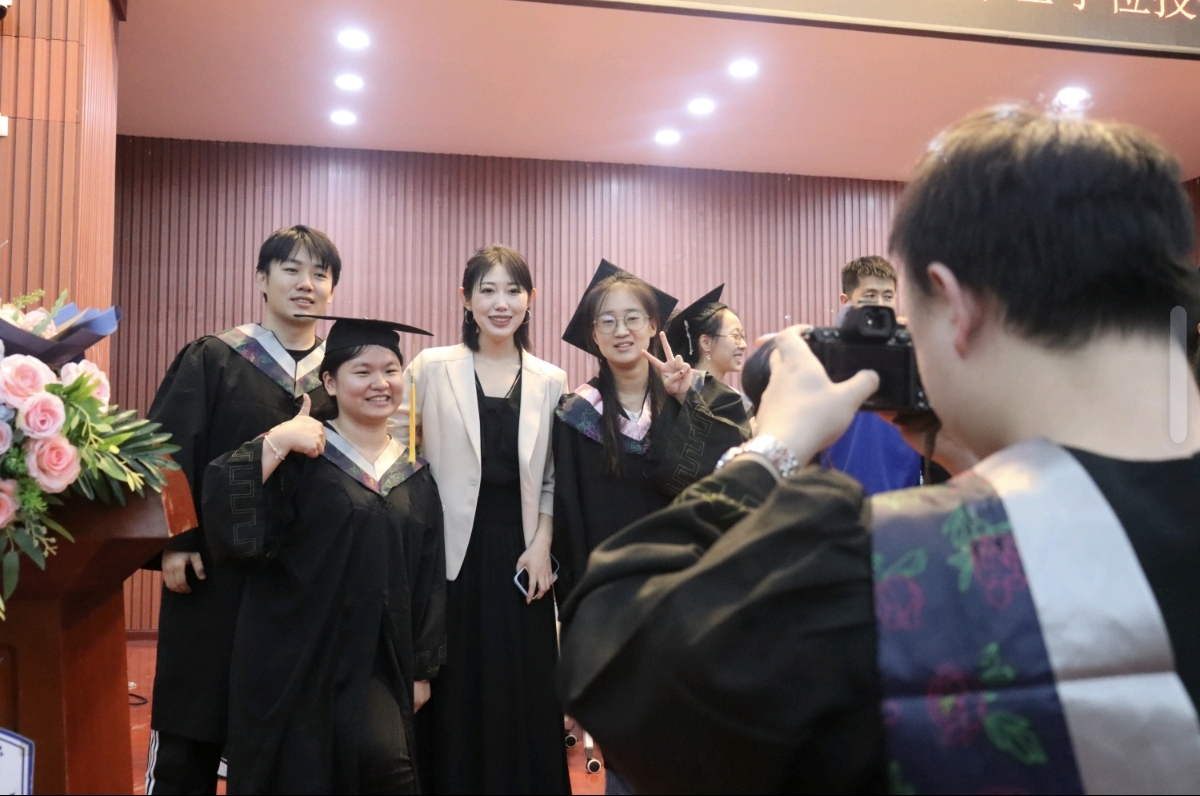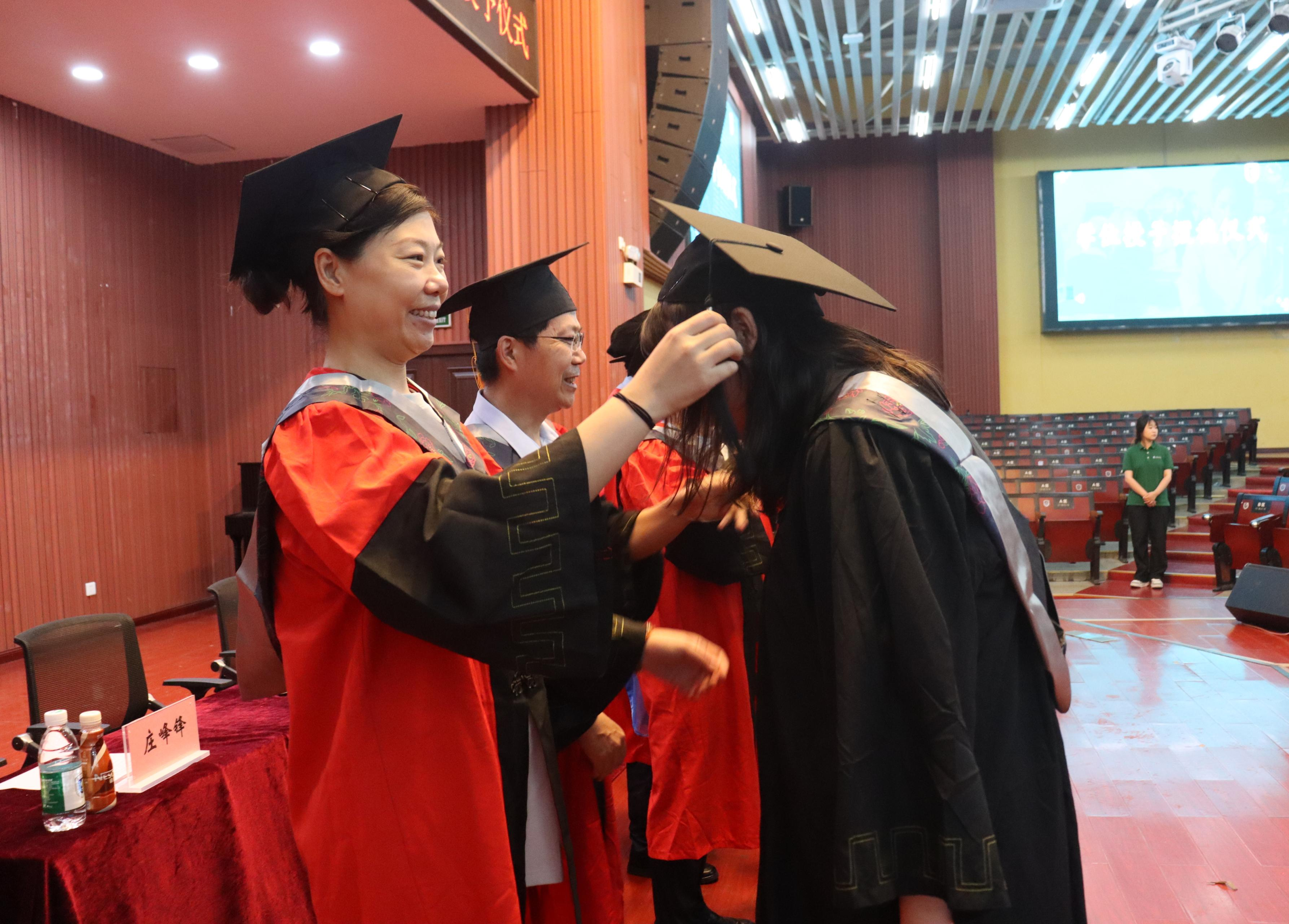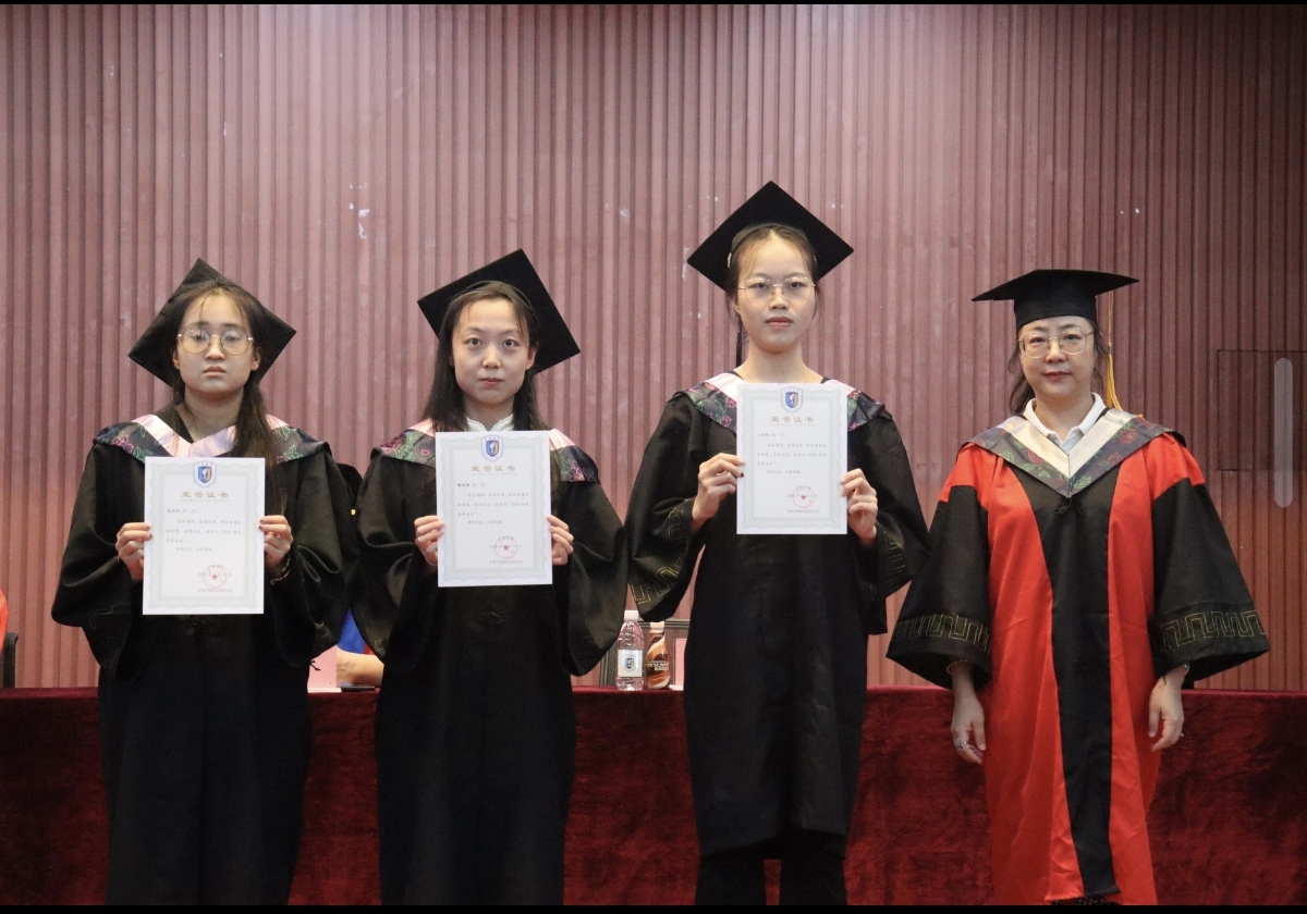 随后,党总支副书记李卉妍教授宣读了优秀毕业生名单并颁发荣誉证书,公司副经理李昭博士宣读了获得学士学位人员名单。在庄重的学位授予环节中,朱沁夫副董事长、陈小勇经理等10位导师为毕业生逐一拨穗正冠,并合影留念。