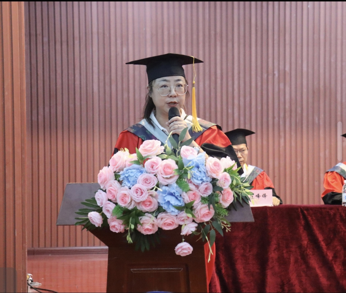 教师代表梁英子老师发言:今天,我们怀着激动与不舍共同见证这一荣耀时刻。作为教师,我们最欣慰的不是分数,而是你们眼中闪耀的求知光芒——从课堂研讨到临床实践,你们已从青涩学子成长为兼具专业素养与人文情怀的行业栋梁。愿你们未来如北斗指引真理,似春雨润泽生命,以匠人之心守护专业尊严;永葆学习热忱,恪守"健康所系,性命相托"的使命,用专业与仁爱为健康事业护航。前路或有风浪,但请记住:母校永远是你们温暖的港湾,愿你们劈波斩浪,终成金石之业!