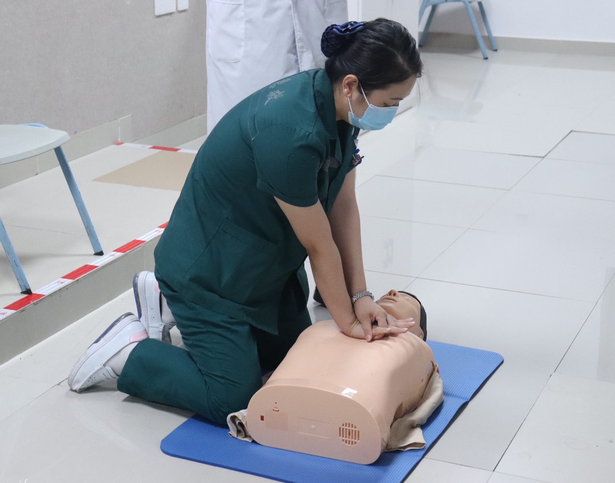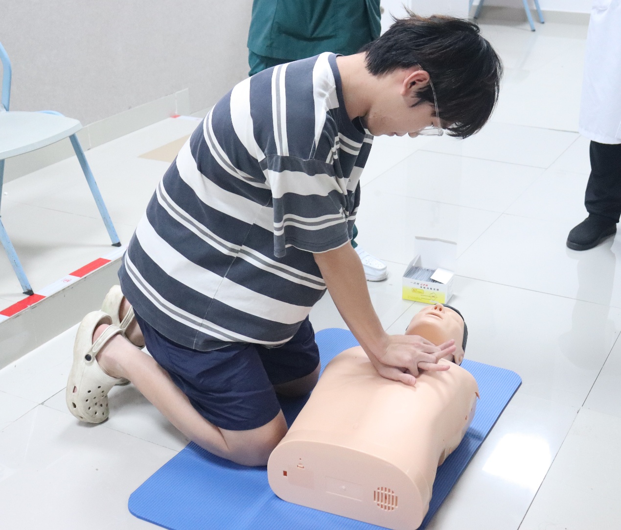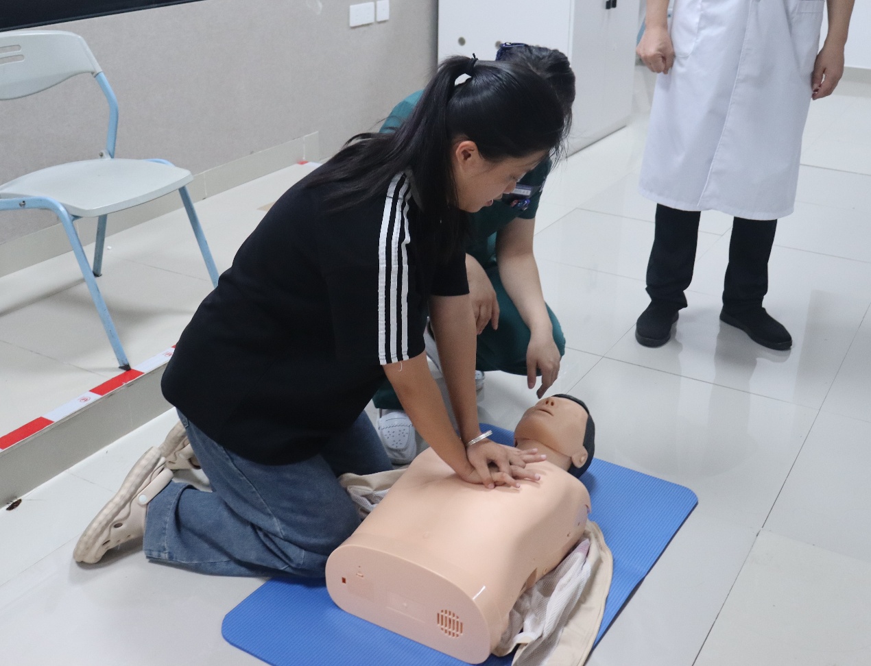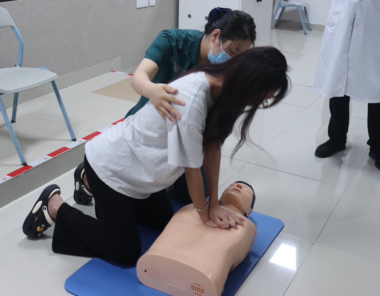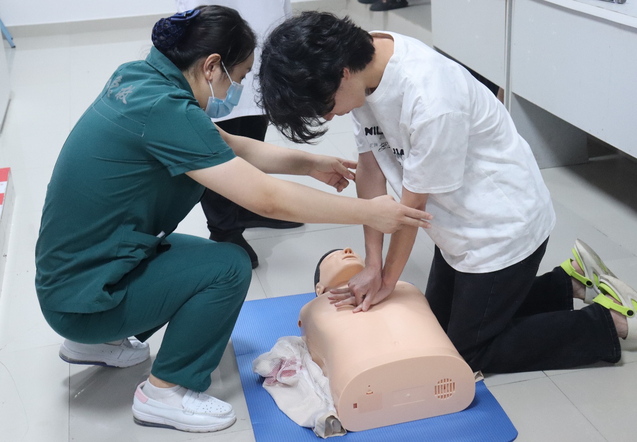 老师们为同学们进行心肺复苏示范,帮助大家在遇到突发状况时,能够更加冷静沉着地对患者实施急救。